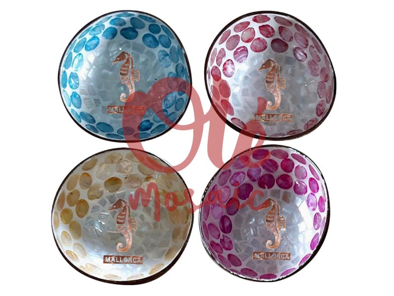 Olé Mosaic » Bols » 4 Coconut Bowls 13 x 6 cm. Seahorse. Mosaic Design. Mallorca.