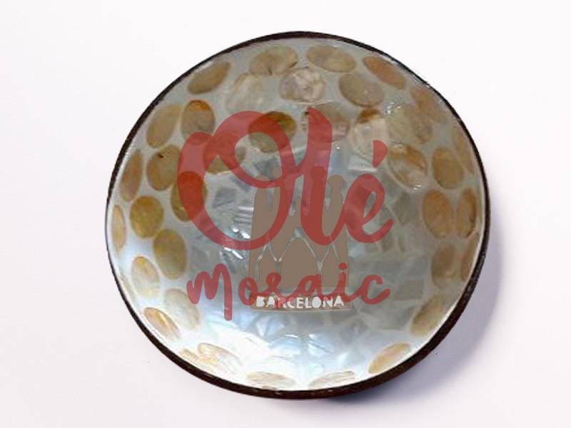 This beige coconut bowl is an exquisite decorative piece inspired by the emblematic Sagrada Familia, one of Barcelona’s most representative monuments. Its unique design combines a polished surface with a sophisticated pattern of circles in beige tones that evoke the intricate beauty of Gaudí’s architecture. In the center, the distinctive engraving of the Sagrada Familia stands out elegantly, adding a cultural touch that resonates with the city’s spirit. This bowl is not only a decorative item but also functional, ideal for serving appetizers or as an attractive centerpiece that will capture attention in any home. The use of coconut as a material highlights its authenticity and connection with artisan traditions, making it a perfect souvenir for those who wish to take a piece of Barcelona with them. At Olé Mosaic, we pride ourselves on offering souvenirs like this coconut bowl that reflect Spain’s rich cultural heritage. This product is an excellent option for tourist gift shops looking for authentic, quality items that can offer tourists a tangible connection to their experience in Barcelona.
