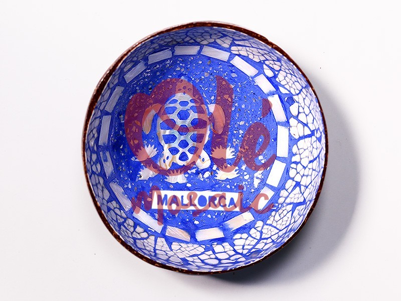 Olé Mosaic » Bols » Blue coconut bowl. Turtle. Mediterranean style. Island. Mallorca.