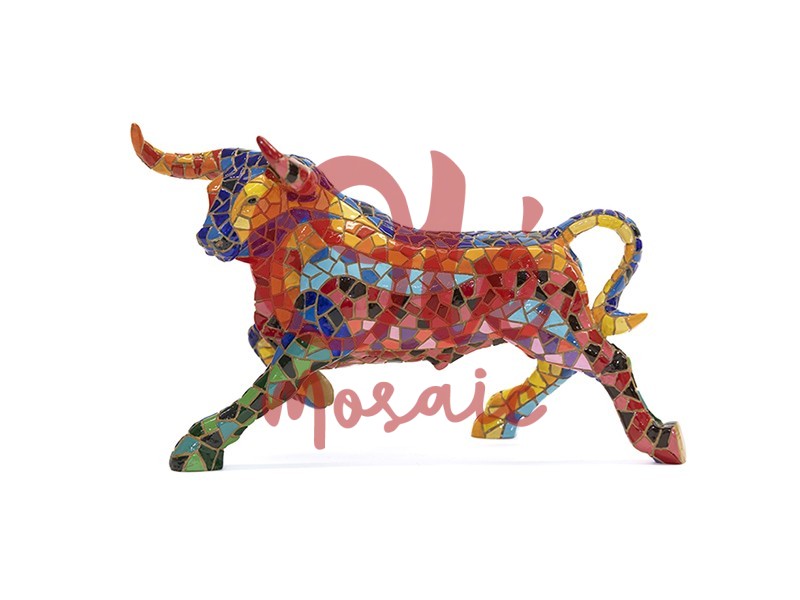 Olé Mosaic » Figures » Bull Mosaic Figure, 24 cm. Red, Blue, and Yellow.