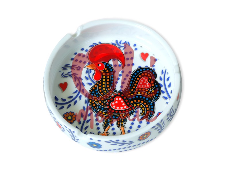 Olé Mosaic » Ashtrays » 10 cm Ceramic Ashtray. Roosters. White