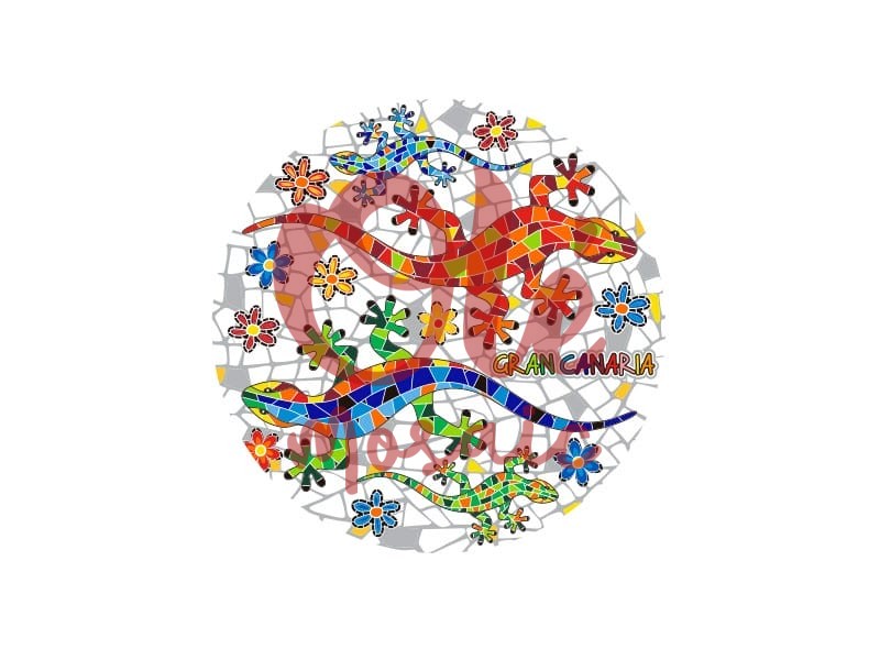 This ceramic coaster, decorated with vibrant salamander illustrations, is a representative souvenir of Gran Canaria, designed to capture the essence of colorful Canarian folklore. Featuring a mosaic design that displays an explosion of red, green, blue, and yellow hues, this coaster is both functional and decorative. Salamanders, a symbol of good luck in various cultures, intertwine with multicolored flowers, creating a joyful and lively composition. The inscription “Gran Canaria” is subtly integrated, adding authenticity and reinforcing its cultural connection to the island.