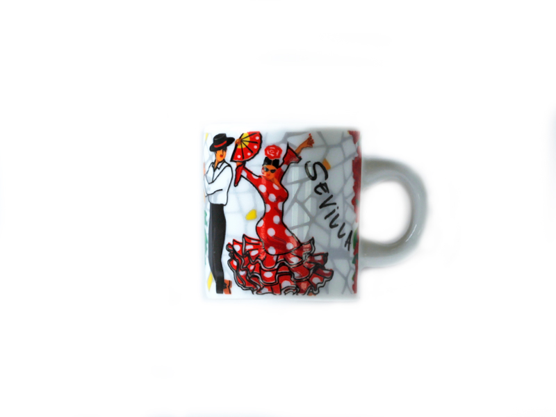 Ceramic magnet decorated with a typical Seville scene: a couple dancing flamenco. This attractive white magnet stands out for its handcrafted, hand-painted design, with vivid red and black colors that capture the elegance of Andalusian dance. The figure of the female dancer, with her ruffled dress and a parasol, alongside the male dancer, with his hat and elegant attire, evokes the energy of local festivities. It includes the text “Sevilla”, which adds a distinctive touch to this charming souvenir.