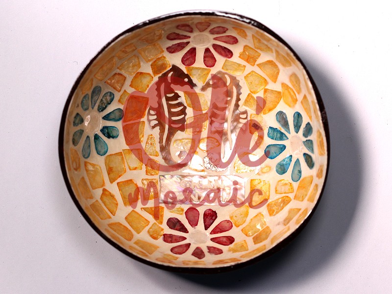 Olé Mosaic » Bols » Coconut bowl with flowers. Seahorse. Gran Canaria.