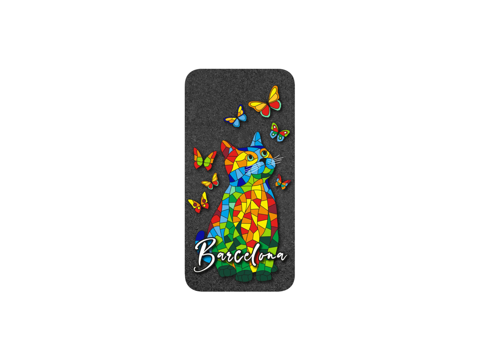 Against an elegant black background, the multicolored butterflies that complement the illustration add a touch of joy and dynamism, making this accessory an excellent souvenir that celebrates Barcelona’s creativity and cultural richness. This product is not only functional but also serves as a charming reminder of the experience lived in this vibrant city. At Olé Mosaic, we offer this case as part of our selection of authentic souvenirs, ideal for tourists looking to take home an artistic representation of their trip. As wholesale case distributors, we guarantee quality and originality in every product, making it a perfect option for tourist gift shops wishing to offer the best of Catalan culture.