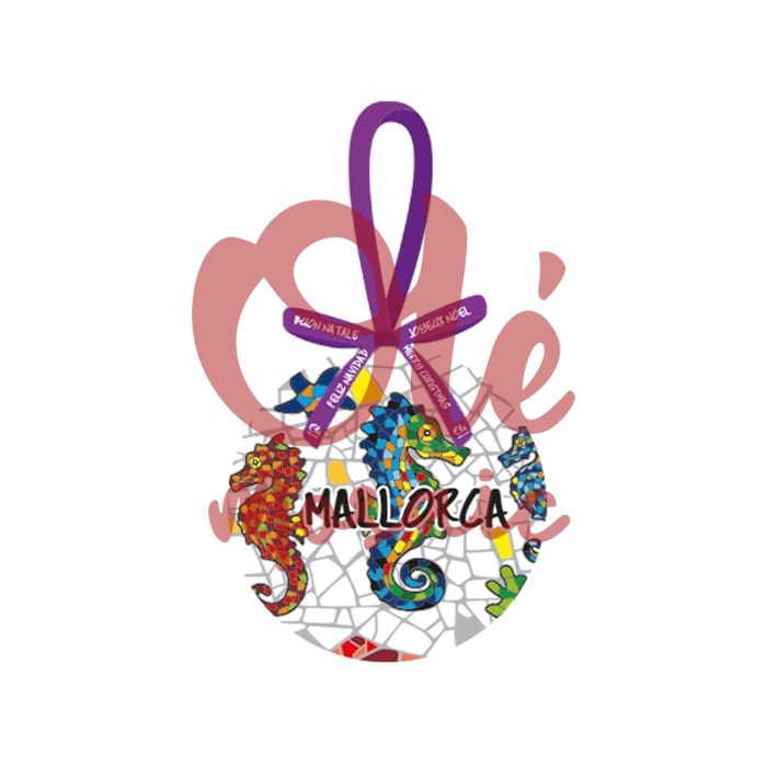 The ornament evokes the rich marine life of Mallorca’s crystal-clear waters, where seahorses are a symbol of local wildlife. This Christmas ball is not just a festive accessory, but an excellent representation of the region’s cultural heritage, ideal for those seeking an authentic souvenir that encapsulates the magic of Mallorca. At Olé Mosaic, as souvenir wholesalers, we offer products that stand out for their quality and exclusive design, making this ball an an excellent gift or decoration that will undoubtedly delight tourists and collectors.