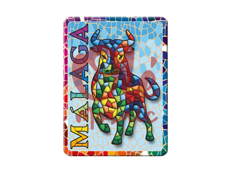 Olé Mosaic » Magnets » Metal magnet. Bull. Mosaic. Malaga. 8 cm.