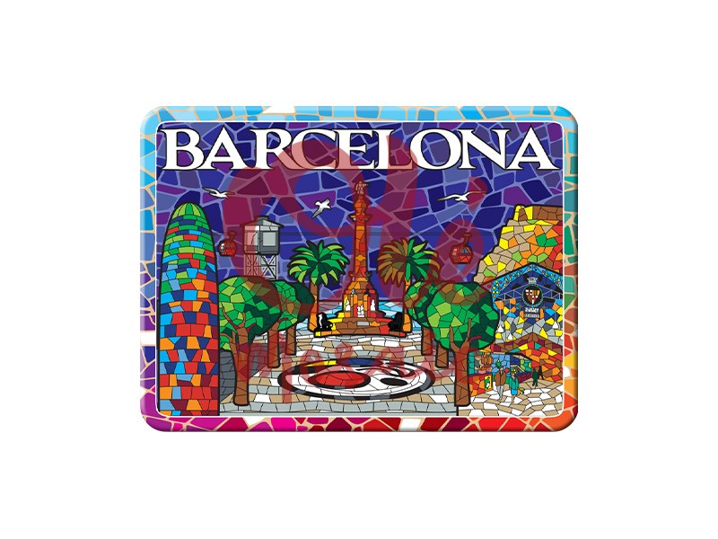 This 8 cm metal magnet is a vibrant representation of La Rambla, one of Barcelona’s most emblematic icons. With a mosaic design that highlights the cultural essence of the Condal City, this souvenir captures the beauty and dynamism of the famous avenue. The colorful details and vibrant nuances of the magnet include the celebrated Columbus monument, surrounded by palm trees that evoke the Mediterranean atmosphere and attractive buildings that bring the place to life. The blue background intensifies the depth of the design, making each element shine and become a celebration of Barcelona’s heritage.