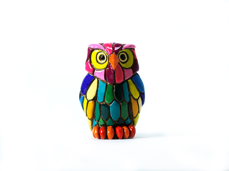 Hand-painted effect resin owl figure. This charming owl, 6 cm tall, is a gem of local craftsmanship that captivates with its vibrant design and colorful visual effect. Each figure, meticulously crafted with a hand-painted effect, features an intricate combination of colors such as pink, blue, green, and yellow, which highlight its plumage and friendly expression. The owl’s large, detailed eyes bring life and character to the piece, making it an unforgettable souvenir of the region’s folkloric tradition.