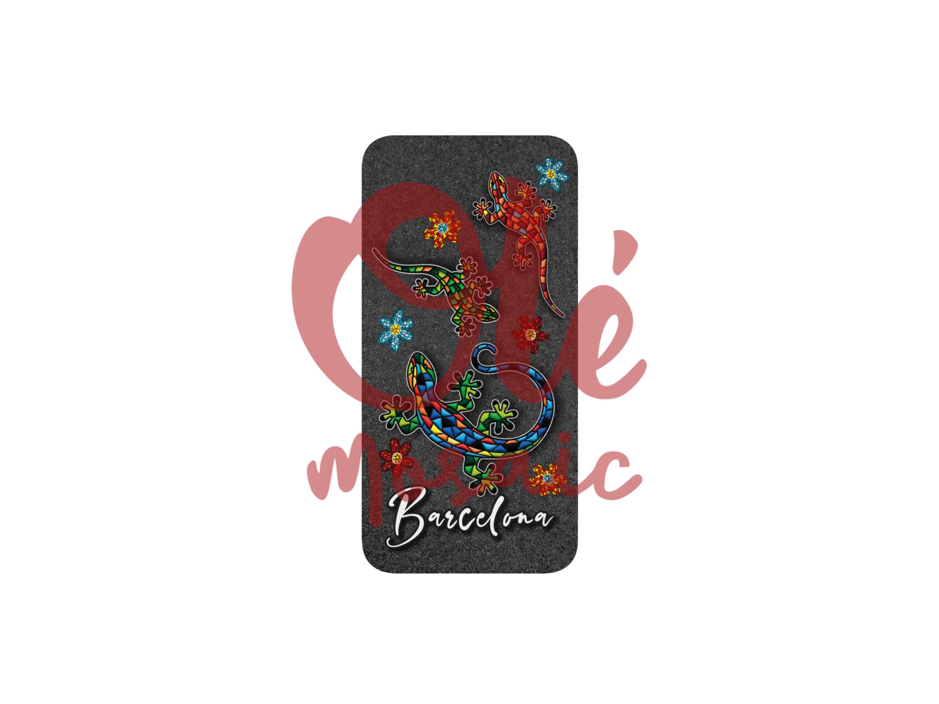 We present the iPhone 13 Pro case, an attractive souvenir inspired by Barcelona’s rich culture. Crafted from high-quality TPU, this case combines functionality and style with an elegant design that stands out against a black background. On its surface, various vibrant colored salamanders are displayed, a motif that evokes the essence of Catalan modernism, an artistic movement for which Barcelona is globally recognized.
