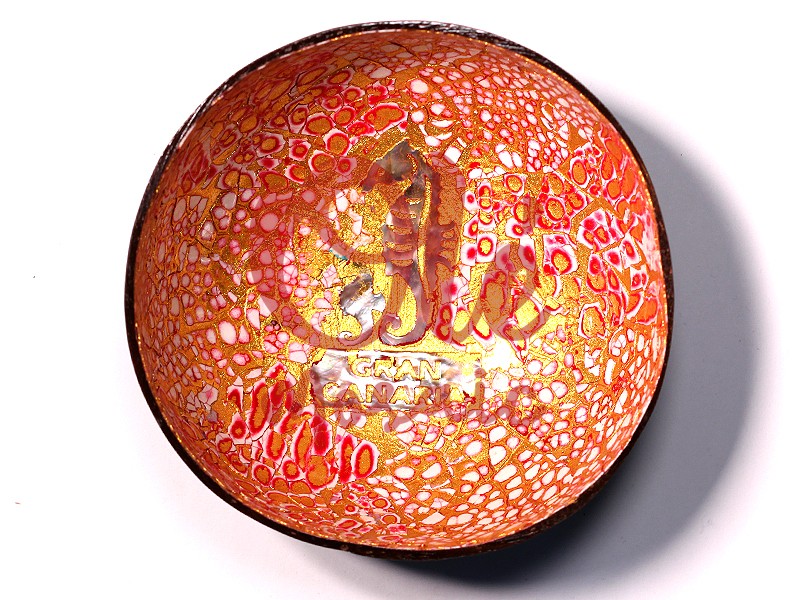 Red coconut bowl, decorated with an elegant seahorse, inspired by the beauty of Gran Canaria. This attractive souvenir is handcrafted, with an artisanal, hand-painted design that combines red and gold tones on a unique texture. The seahorse, a symbol of marine life, stands out with bright details, while the base of the bowl includes the inscription “Gran Canaria”, adding a representative touch of the region. Ideal as a decorative piece or a functional accessory.