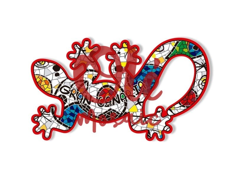 Magnet with an illustrative design of the famous “Punt de trobada” of Gran Canaria, 10 cm. This colorful magnet features a charming lizard adorned with a vibrant mosaic of blues, yellows, reds, and whites, evoking the art and culture of the Canary Islands. With the inscription “Gran Canaria” in an attractive style, it is the perfect souvenir to decorate any space, as it captures the visual essence of the island.