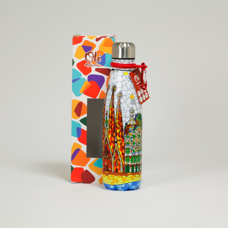 As a representative souvenir of Barcelona, this bottle is much more than a simple accessory; it is a keepsake that connects tourists with Catalan culture and art. At Olé Mosaic, we distribute authentic and original souvenirs, and this stainless steel bottle is an excellent option for tourist gift shops looking to offer products that combine functionality and cultural significance. It is a perfect example of a Barcelona souvenir that captures the city’s vibrant essence.