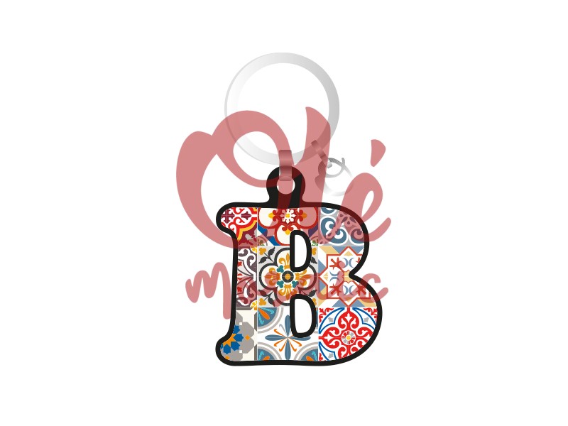 Wooden keychain shaped like the letter “B”, adorned with colorful mosaics inspired by traditional Spanish design. This item features a vibrant finish in red, blue, and yellow tones, recreating an attractive blend of typical ceramic patterns. Its lightweight and practical design makes it an ideal accessory for personalizing your keychain, and its aesthetic highlights Spain’s rich cultural heritage.