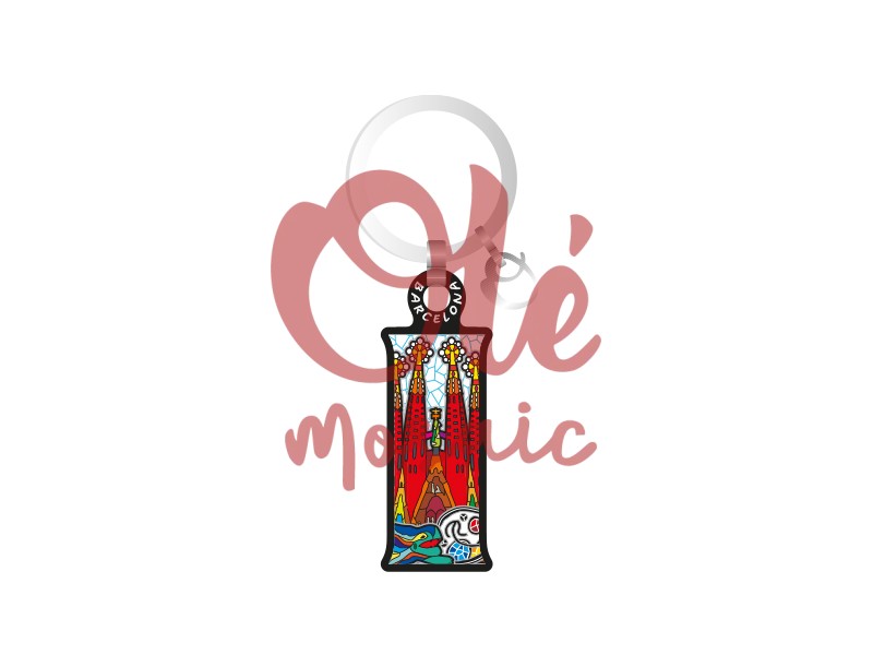 The colorful graphic elements surrounding the representation of the Sagrada Familia make this keychain stand out, with a bright color palette that reflects the energy and creativity characteristic of the city. With a careful finish and details that evoke modernist art, this keychain transforms into a symbol of the connection between visitors and the unique architecture of the Catalan city.