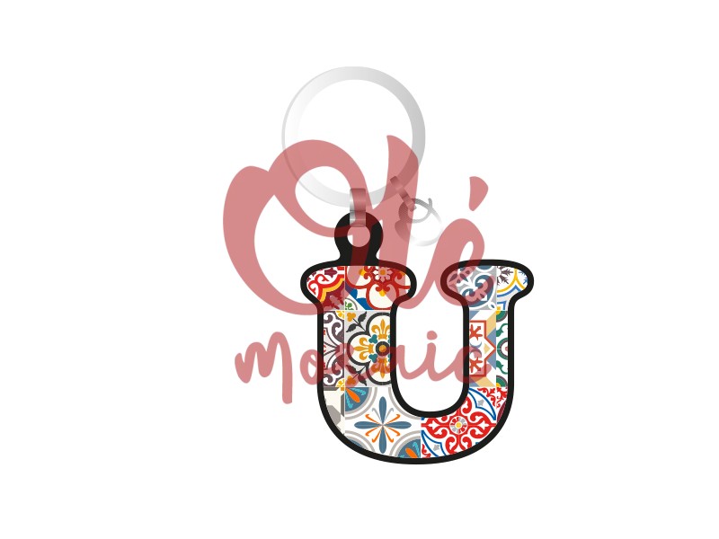 Wooden keychain in the shape of the letter “U”, decorated with colorful motifs reminiscent of traditional Spanish tiles. This attractive souvenir features a handcrafted, hand-painted design that combines vibrant red, blue, and yellow tones, reflecting the country’s rich culture. Ideal for carrying your own initials or as a gift, this keychain is a unique piece that stands out for its originality and craftsmanship.