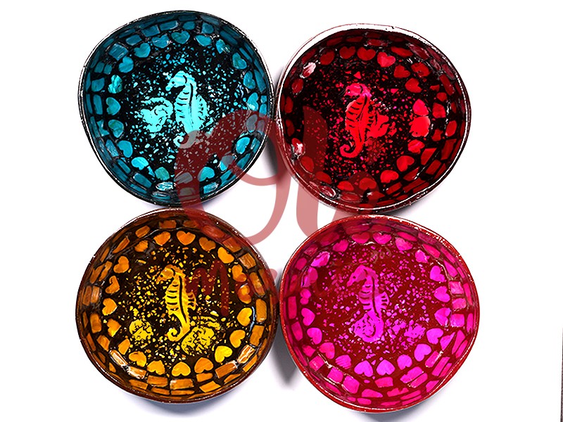 Olé Mosaic » Bols » 4 Coconut Bowls 13 x 6 cm. Seahorse. Heart Pattern.