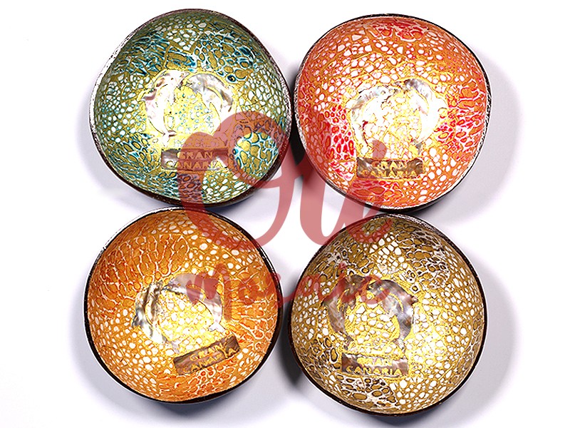 Olé Mosaic » Bols » 4 Coconut bowls 13 x 6 cm. Dolphin. Tropical. Gran Canaria.