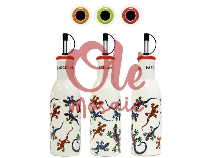 Olé Mosaic » Oil Cruets » Ceramic Oil Dispenser. Salamander. Barcelona. Decal. Beige