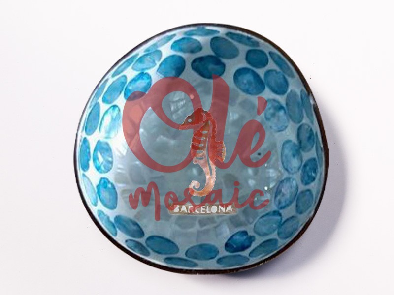 Olé Mosaic » Bols » Blue coconut bowl. Seahorse. Mediterranean style. Barcelona. Marine background.