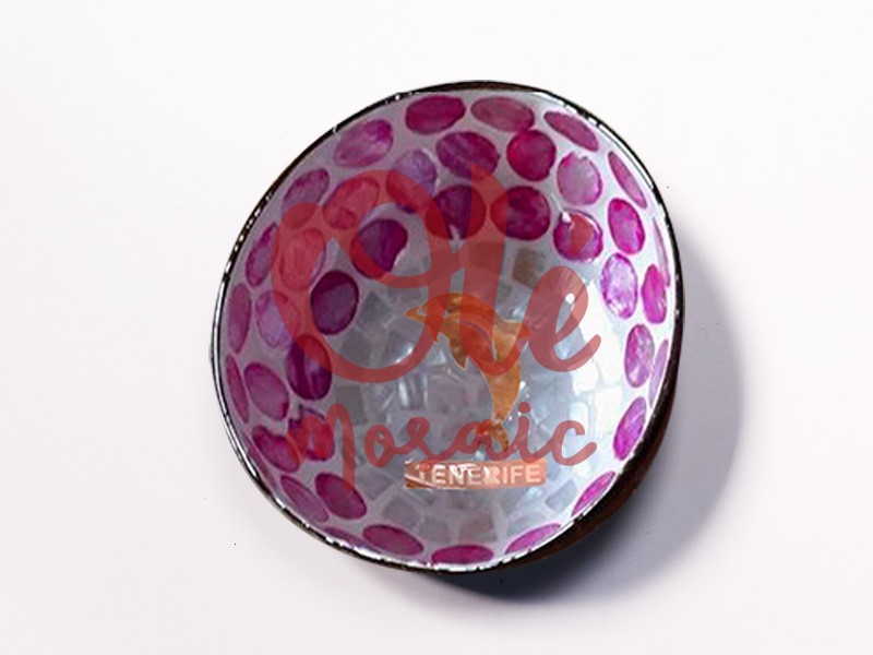 The technique used for its creation incorporates sparkling elements that reflect light in a captivating way, making it an excellent decorative accessory for any space. This bowl is not only perfect for decorative use, but also represents an authentic memento of the Canarian coasts, making it an ideal souvenir for those looking to take a piece of the Tenerife landscape with them. At Olé Mosaic, as a souvenir distributor, we offer products that not only capture the cultural essence of their origin but also provide an emotional connection with the beautiful corners of Spain. This fuchsia coconut bowl is a wonderful option for tourist gift shops looking to offer quality souvenirs with a cultural and authentic touch.