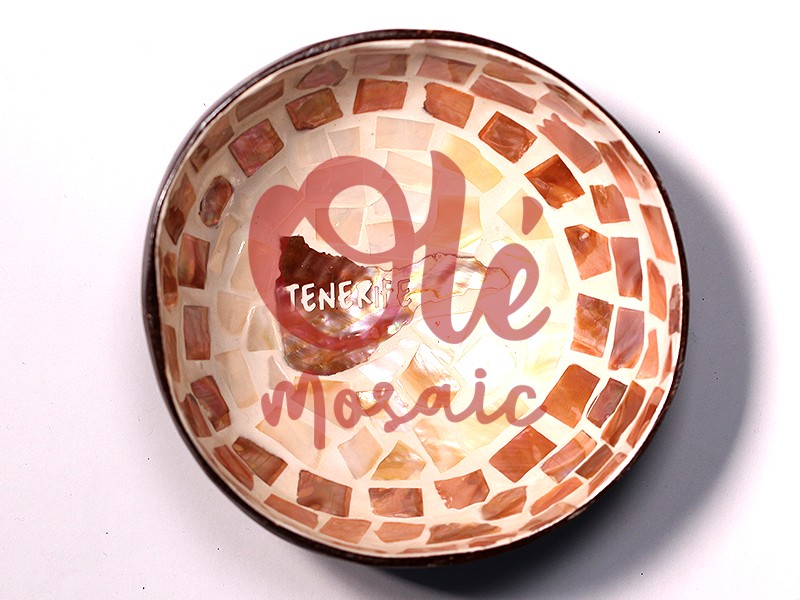 This brown coconut bowl is a handmade piece that captures the essence of the beautiful island of Tenerife. Designed with a mosaic of brown and creamy pieces, this stunning bowl features a delicate outline of the island inside, highlighted with the word “TENERIFE”, evoking memories of the volcanic landscapes and beaches of this paradise. Made from natural material, the bowl combines rustic aesthetics with functionality, making it a versatile item, ideal for both decoration and daily use at the table. Its polished surface subtly reflects light, adding a warm touch to any environment. This souvenir not only celebrates the cultural heritage of the Canary Islands but also stands out for its authenticity and craftsmanship. A perfect gift for tourists who wish to take a piece of Canarian culture with them, this brown coconut bowl is an excellent option for tourist gift shops looking for quality souvenirs. At Olé Mosaic, we specialize in the distribution of representative souvenirs like this bowl, ensuring that each piece is a testament to the cultural richness of its place of origin.