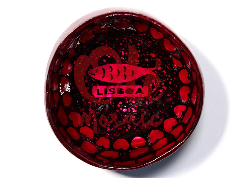 This red coconut bowl, decorated with a sardine, is a representative piece from Lisbon, ideal for those seeking a souvenir that combines tradition and modernity. Its vibrant design stands out with a deep black background that wonderfully contrasts with the intense red color of the bowl, creating a striking visual effect. In the center, the sardine, an iconic symbol of Lisbon’s gastronomy, is enhanced alongside the text “LISBOA”, which adds a touch of authenticity and cultural connection to the piece.
