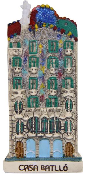 This souvenir, the resin figurine of the emblematic Casa Batlló, is an essential piece for any lover of modernist architecture. Standing 8 cm tall, this handcrafted figurine is meticulously hand-painted to capture every detail of this iconic building designed by Antoni Gaudí. The representation includes the characteristic wavy balconies and the vibrant rooftop that have made Casa Batlló a symbol of Catalan creativity. The vibrant colors —ranging from lush greens and blues to captivating touches of red and yellow— enhance the beauty of the design, making each figurine unique and full of life.