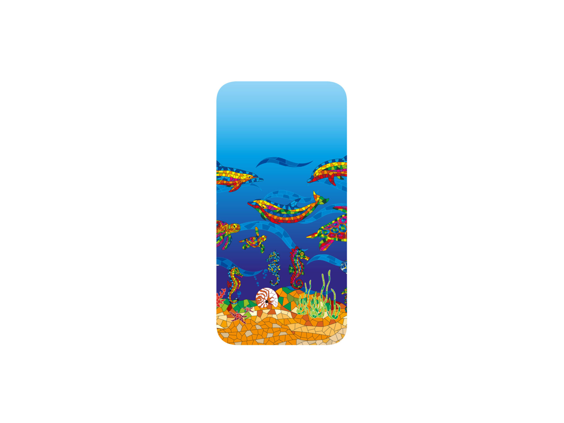 iPhone 14 Pro case with vibrant marine motifs. This exclusive case, made of resistant and flexible TPU material, provides excellent protection for your device. The design features a colorful illustration of a vibrant underwater world, where tropical fish and turtles swim among corals and algae, all set against a deep blue background that evokes the ocean’s vastness. The mosaic technique used highlights the intense and varied tones of this marine ecosystem, creating a captivating visual appeal that truly captures the richness and diversity of underwater life.