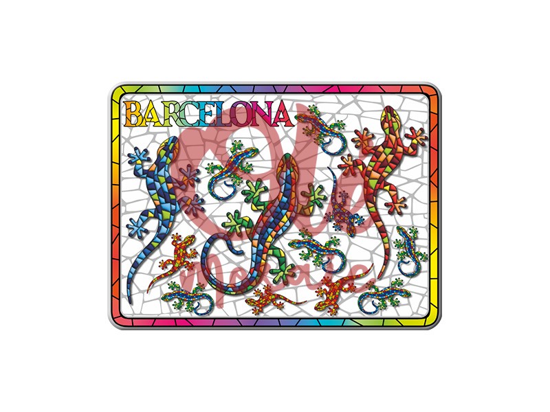 This 8 cm metal magnet is a vibrant representation of Barcelona, ideal for those who wish to take a piece of the city’s rich culture with them. The design stands out for its colorful mosaic of salamanders, which pays homage to the iconic style of Antoni Gaudí, known for his creativity and use of vibrant colors. The harmoniously arranged salamanders feature blue, green, red, and yellow tones, creating a visual effect that captures the city’s vibrant and artistic essence.