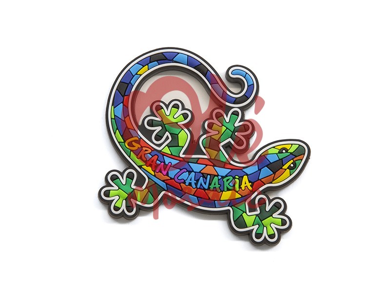 Salamander-shaped PVC magnet representing the colorful folklore of Gran Canaria. This magnet stands out for its vibrant design, with mosaics in blue, green, red, and yellow hues that evoke the rich biodiversity of the islands. The words “Gran Canaria” are printed in striking colors on the lizard’s body, capturing the essence of local culture. Ideal for decorating the fridge and remembering your trips to the islands.