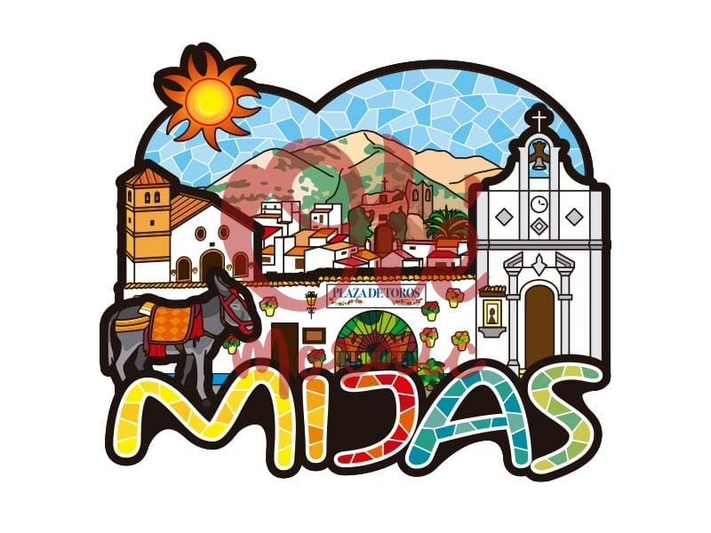 This resin magnet offers a vibrant panoramic view of Mijas, a charming Andalusian village that captures the essence of the Mediterranean. With careful attention to detail, this illustrative piece features emblematic motifs such as the famous bullring, the adorned donkey, and the local church, all framed by a mountainous landscape that enhances the region’s natural beauty. The scene is embellished with colorful architectural elements and a radiant sun that adds joy and warmth to the design. The text «Mijas» is displayed in vivid colors, complementing the illustrations and turning this magnet into a cheerful and vibrant souvenir of the destination.