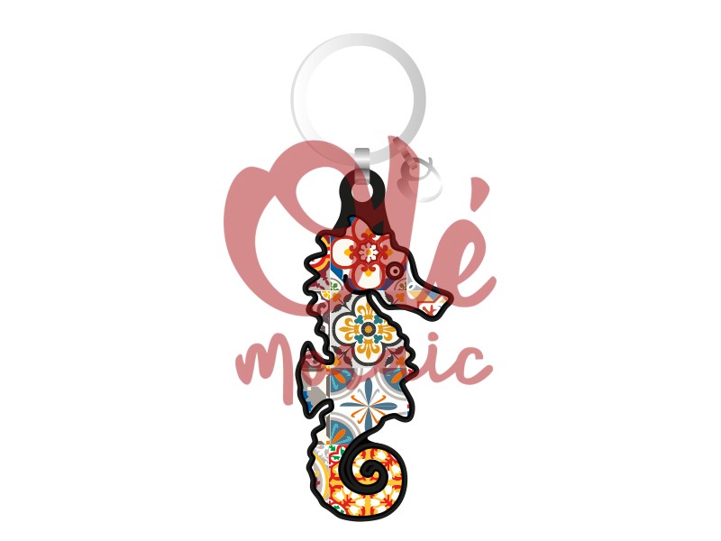 Olé Mosaic » Key rings » Wooden Keychain. Seahorse. Floral Motifs.
