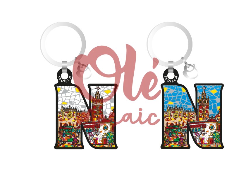 Every detail, from the depiction of the Giralda to the decorative motifs surrounding the letter N, captures the essence of Seville and its festive atmosphere. Perfect for carrying keys with a touch of style, this keychain is also a meaningful keepsake for those who wish to carry a piece of this Andalusian city with them. The combination of functionality and art in this souvenir makes it an ideal gift for friends and family or as an authentic reminder of a beautiful experience in the Andalusian capital.
