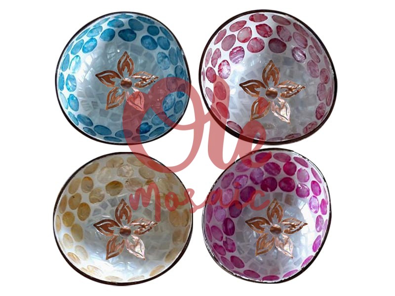 Olé Mosaic » Bols » 4 Bols en noix de coco de 13 x 6 cm. Motif Floral.