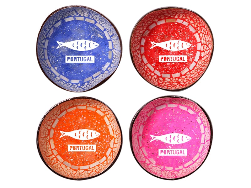 Olé Mosaic » Bols » 4 Bols en noix de coco de 13 x 6 cm. Sardine. Portugal. Lisbonne.