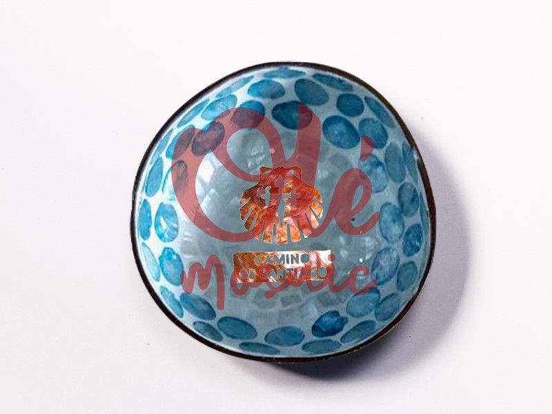 Bol de coco azul decorado con motivos del Camino de Santiago, perfecto para recordar esta emblemática ruta. Este producto artesanal está fabricado con cáscara de coco y presenta, en su interior, un diseño cerámico diseño artesanal, pintado a mano, en tonos azules, que evoca aguas tranquilas. En el centro, destaca una simbología relacionada con el camino, grabada en metal, que le da un toque distintivo. Ideal como recuerdo o para uso decorativo, evoca la esencia de la peregrinación.