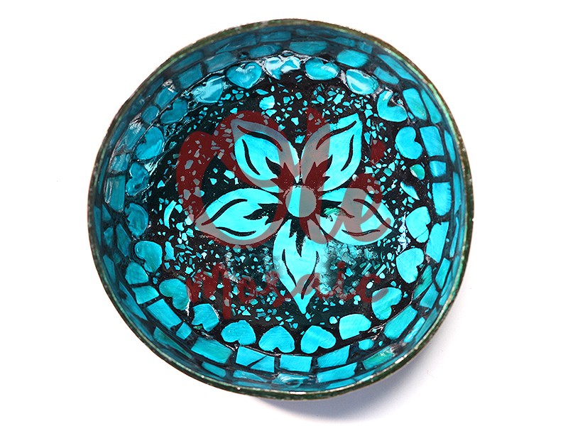 Olé Mosaic » Bols » Bol en noix de coco bleu. Fleur.
