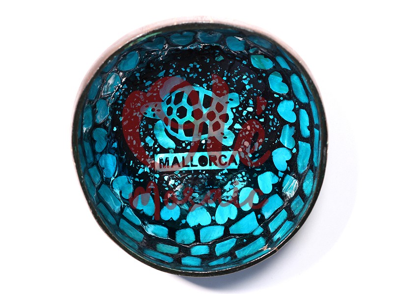 Olé Mosaic » Bols » Bol en noix de coco bleu. Tortue. Majorque.
