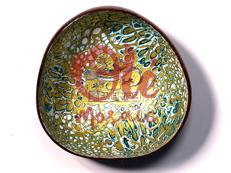 Bol de coco azul decorado con una llamativa salamandra, que representa la fauna de Tenerife. Este original recuerdo está elaborado en cerámica, y destaca su acabado en tonos azules y dorados que evocan el vibrante paisaje canario. La técnica de diseño artesanal, pintado a mano, resalta los intrincados detalles de la superficie, mientras que la inscripción « Tenerife » añade un toque local. Ideal para decorar tu hogar con un pedazo de la cultura tinerfeña.