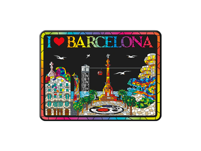 Olé Mosaic » Aimants » Aimant en métal. Panoramique. Mosaïque. Barcelone. Noir. 8 cm.