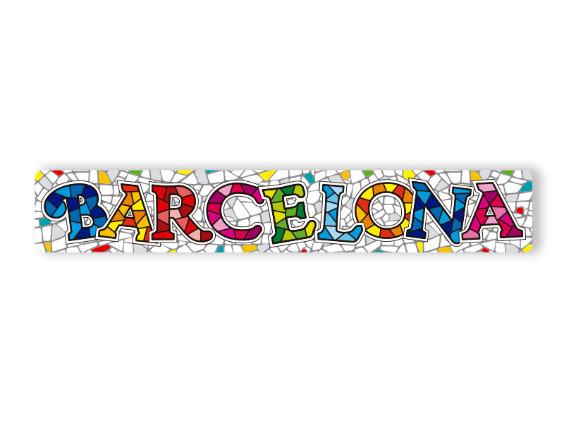 Aimant avec l’enseigne « Barcelone », de 11 cm de longueur, qui présente un design vibrant et coloré. Cet aimant reproduit l’esthétique emblématique de la mosaïque, avec sa riche palette de couleurs qui rehausse le charme de la ville. Sur un fond de formes géométriques dans des tons gris et avec une typographie accrocheuse en couleurs primaires, c’est un souvenir idéal de votre visite dans la capitale catalane ou un ornement parfait pour n’importe quel espace.