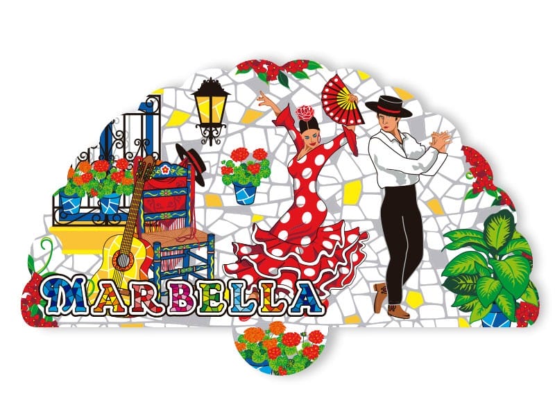 Cet aimant en résine capture l’essence de l’ambiance vibrante de Marbella, devenant un souvenir authentique qui enchante les visiteurs. Conçu avec une représentation colorée et détaillée d’un patio andalou typique, l’aimant montre deux danseurs de flamenco : l’un avec un costume rouge à pois saisissant, symbole de la passion de cet art, et l’autre avec une tenue traditionnelle, reflet du riche héritage culturel de la région.