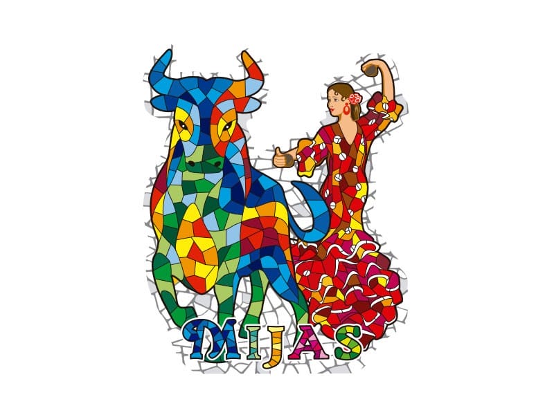 Olé Mosaic » Aimants » Aimant en résine. Taureau et danseuse de flamenco. Mijas.
