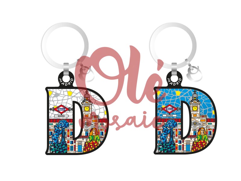 Porte-clés en bois en forme de lettre « D », représentant l’horloge emblématique de la Puerta del Sol à Madrid. Cet attrayant porte-clés combine une technique de conception en mosaïque avec des couleurs vibrantes qui illustrent des détails culturels, comme une figure en costume traditionnel et le logo emblématique du métro de Madrid. Son design artisanal, peint à la main, reflète le charme et l’essence de la capitale espagnole, en faisant un souvenir idéal pour se remémorer votre visite à Madrid.