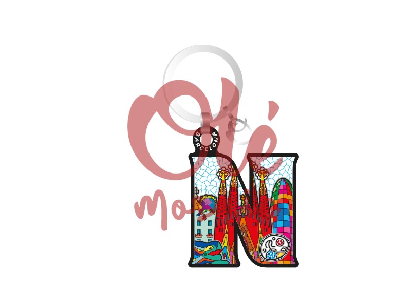 Olé Mosaic » Porte-clés » Porte-clés en bois. Lettre N. Sagrada Familia. Barcelone.