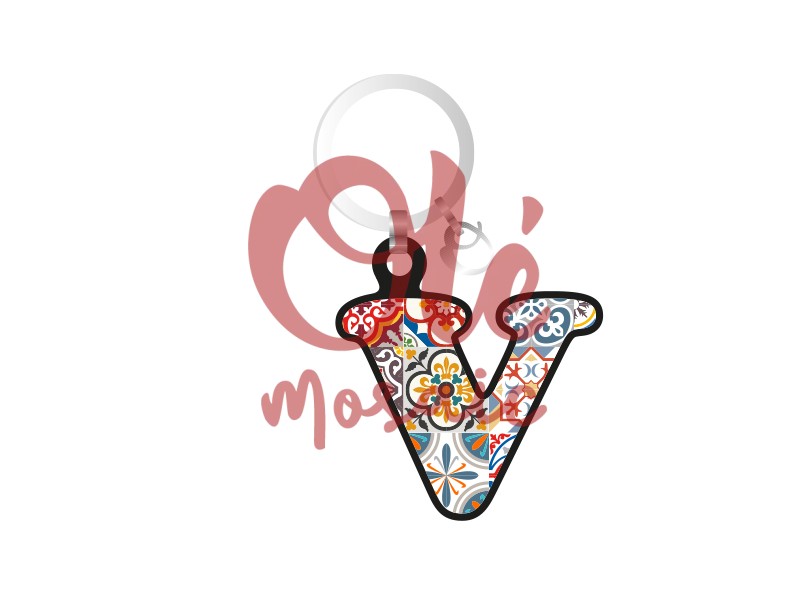 Olé Mosaic » Porte-clés » Porte-clés en bois. Lettre V. Carreaux.
