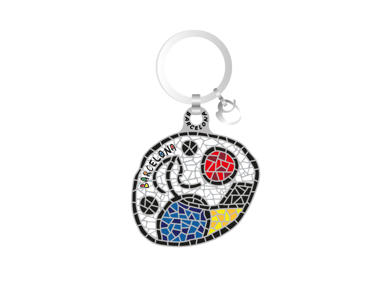 Visuellement, la pièce se distingue par ses formes dynamiques qui rappellent l’esthétique joyeuse des mosaïques gaudiennes, ce qui en fait un accessoire attrayant et fonctionnel pour tout amateur d’architecture et d’art. Ce porte-clés n’est pas seulement pratique, mais aussi un morceau de culture catalane, qui évoque des moments dans la ville vibrante de Barcelone à chaque utilisation.