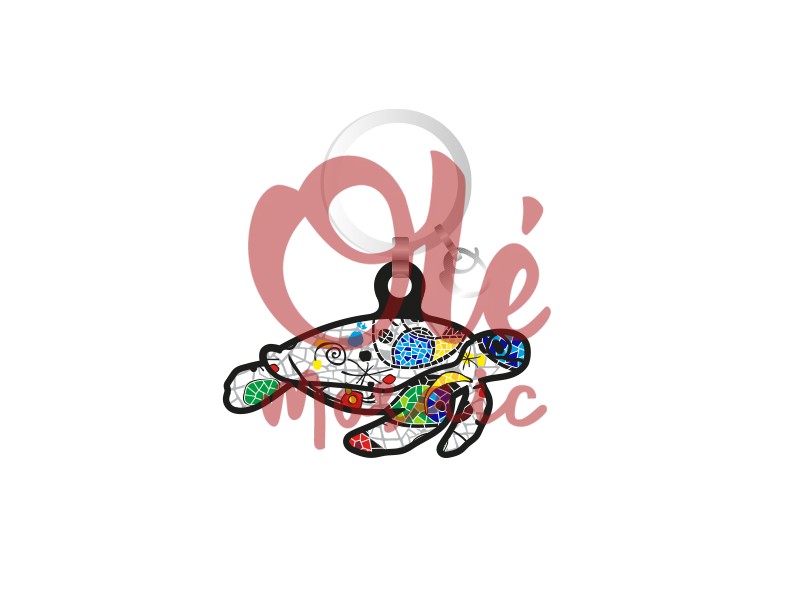 Ce porte-clés en bois en forme de tortue est un véritable hommage au modernisme barcelonais, inspiré du célèbre trencadís de Gaudí. La pièce présente une finition peinte à la main avec une explosion de couleurs vibrantes, où le bleu, le vert et le rouge s’entrelacent dans un design ludique qui capture l’essence de la créativité catalane. La tortue, symbole de longévité et de sagesse, est réinterprétée dans un style contemporain, en faisant un accessoire idéal pour les touristes comme pour les amateurs de culture.