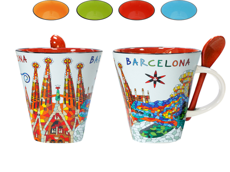 Accompagnée d’une cuillère assortie, cette tasse n’est pas seulement parfaite pour savourer vos boissons préférées, mais elle évoque également la richesse de la culture et de l’art de Barcelone, en faisant un cadeau inoubliable ou un souvenir exceptionnel. C’est un souvenir authentique, idéal pour les touristes désireux d’emporter un morceau de l’histoire et du mode de vie de cette magnifique ville.